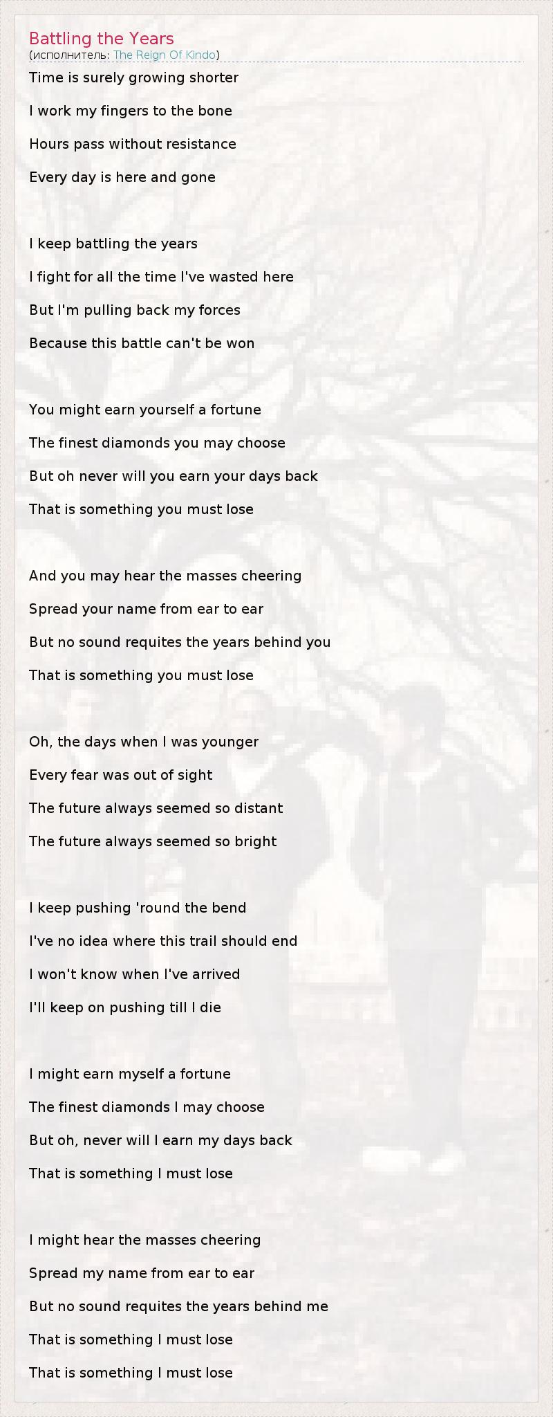 А как ты думаешь, о чем песня "Battling the Years" ?