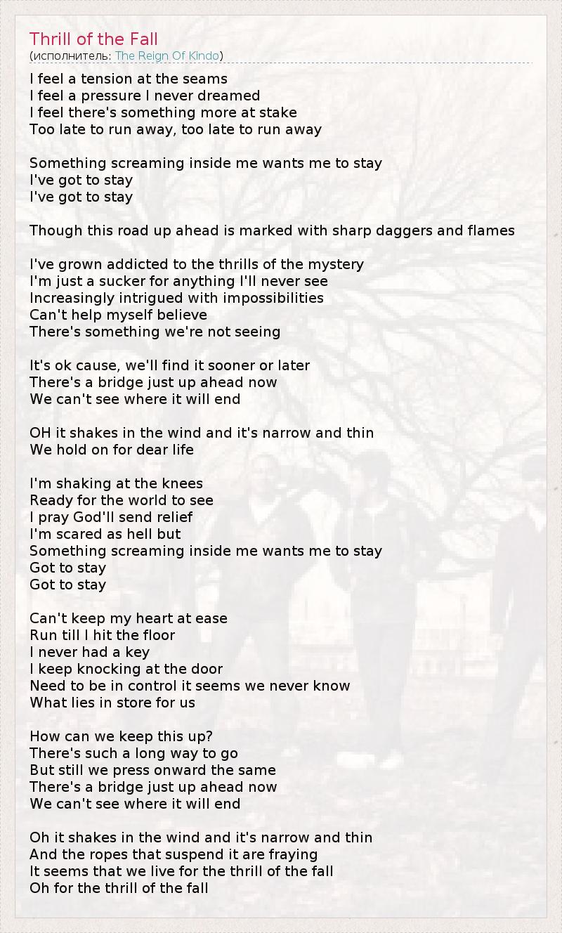 А как ты думаешь, о чем песня "Thrill of the Fall" ?