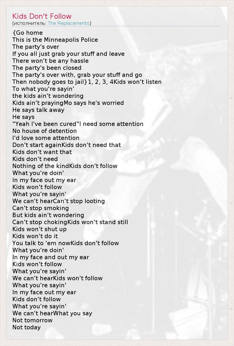 А как ты думаешь, о чем песня "Kids Don't Follow" ?