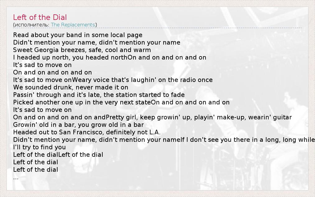 А как ты думаешь, о чем песня "Left of the Dial" ?