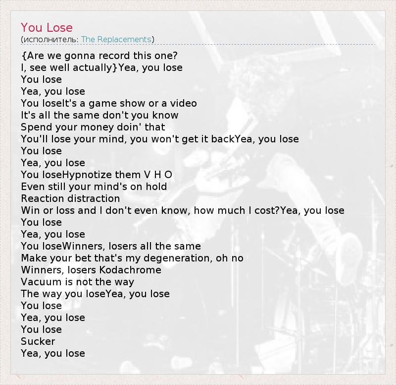 Win or loss and I don't even know, how much I cost?Yea, you lose