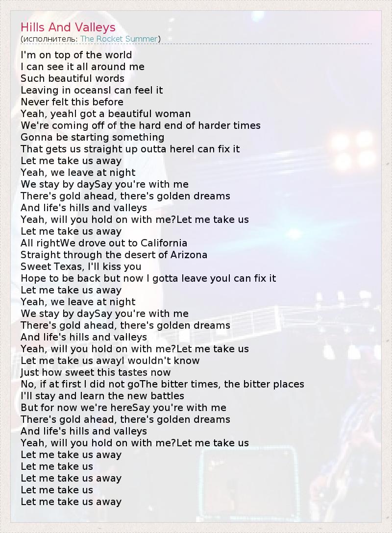 А как ты думаешь, о чем песня "Hills And Valleys" ?