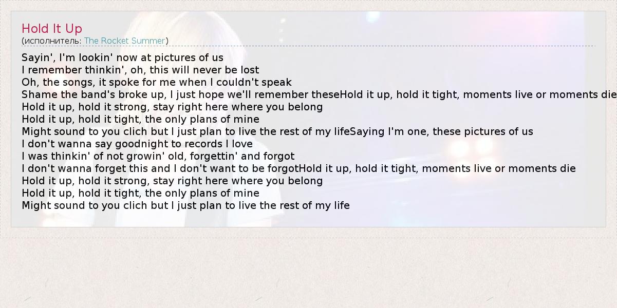 Shame the band's broke up, I just hope we'll remember theseHold it up, hold it tight, moments live or moments die