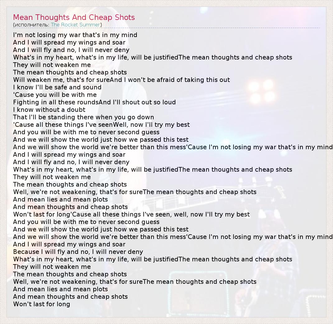 А как ты думаешь, о чем песня "Mean Thoughts And Cheap Shots" ?