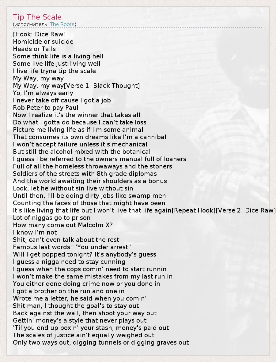 А как ты думаешь, о чем песня "Tip The Scale" ?