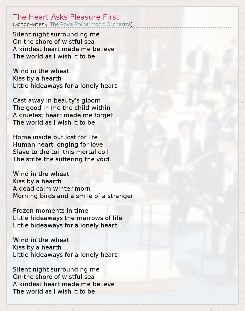 А как ты думаешь, о чем песня "The Heart Asks Pleasure First" ?