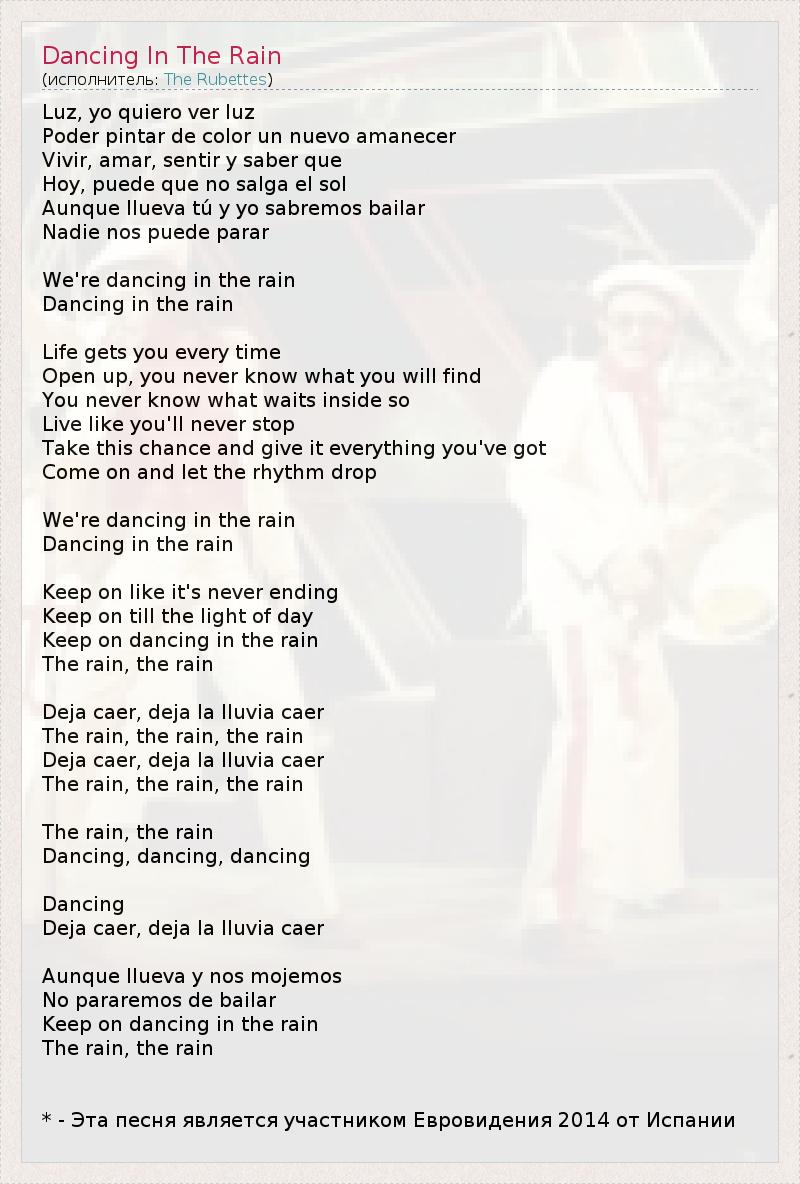 А как ты думаешь, о чем песня "Dancing In The Rain" ?