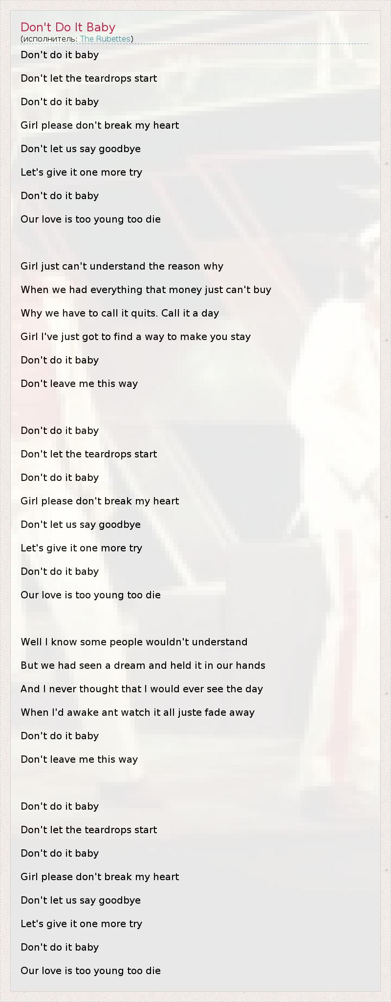 А как ты думаешь, о чем песня "Don't Do It Baby" ?