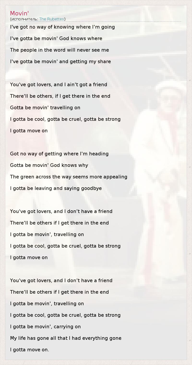I've gotta be movin' God knows where
