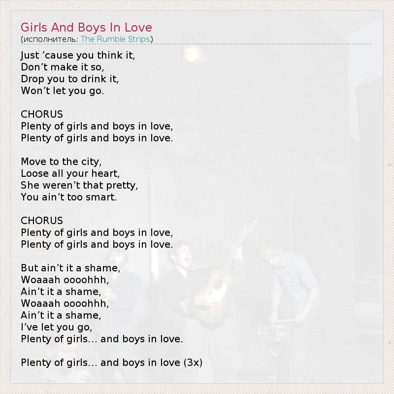 А как ты думаешь, о чем песня "Girls And Boys In Love" ?