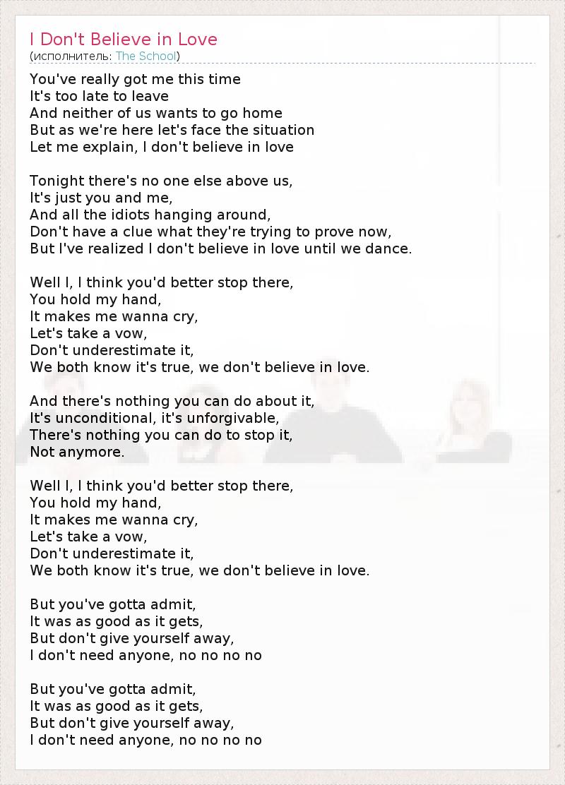 ГлавнаяИсполнителиThe SchoolI Don't Believe in Love