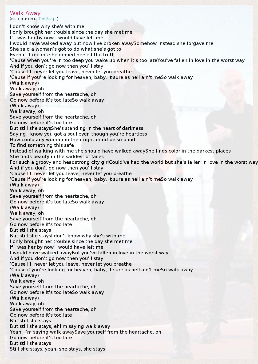А как ты думаешь, о чем песня "Walk Away" ?