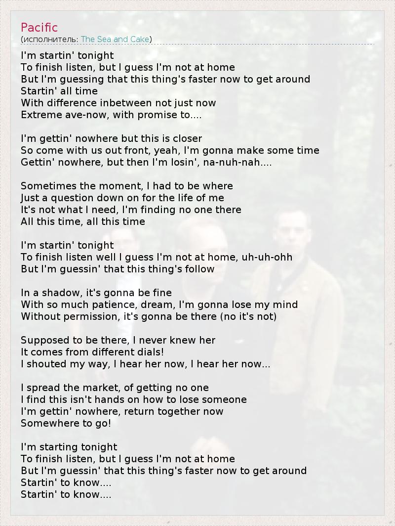 Это интересно:Группа The Sea And Cake образована в 1994 году в городе Чикаго. Коллектив, состоящий сплошь из заслуженных людей чикагского индепендента, возник на обломках Shrimp Boat, рекрутировав в свои ряды гитариста из Coctails и барабанщика из Tortoise.