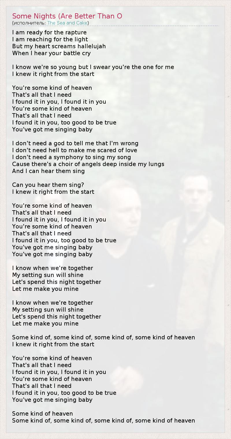 А как ты думаешь, о чем песня "Some Nights (Are Better Than O" ?