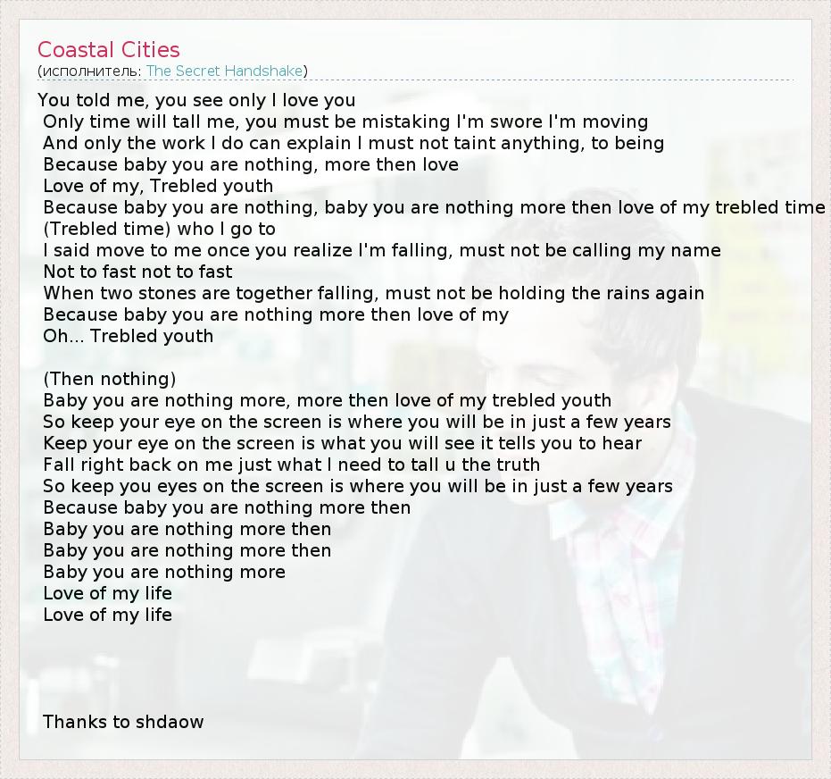 А как ты думаешь, о чем песня "Coastal Cities" ?