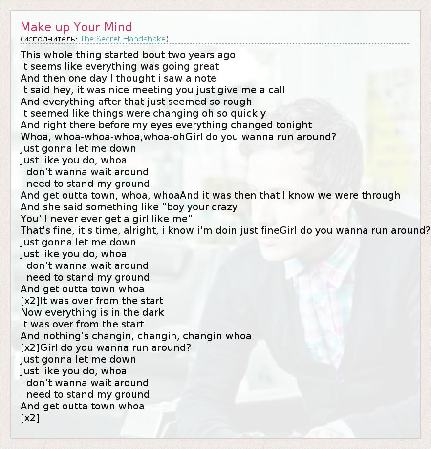 А как ты думаешь, о чем песня "Make up Your Mind" ?