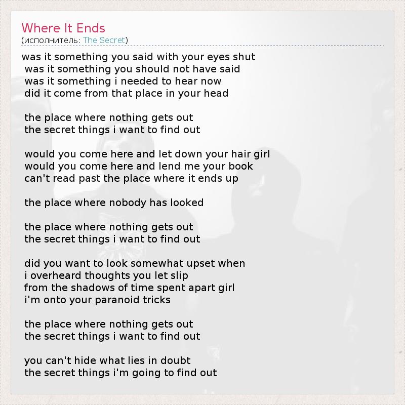 А как ты думаешь, о чем песня "Where It Ends" ?