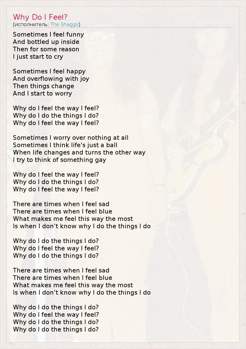 А как ты думаешь, о чем песня "Why Do I Feel?" ?