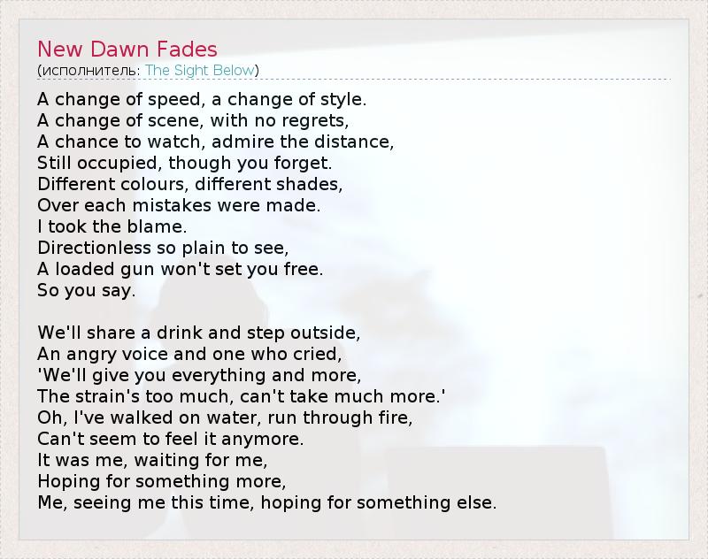 А как ты думаешь, о чем песня "New Dawn Fades" ?