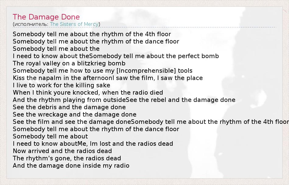 А как ты думаешь, о чем песня "The Damage Done" ?