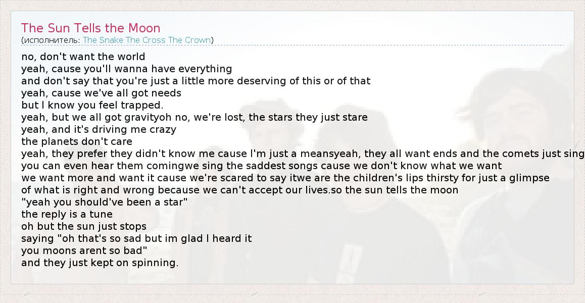 А как ты думаешь, о чем песня "The Sun Tells the Moon" ?