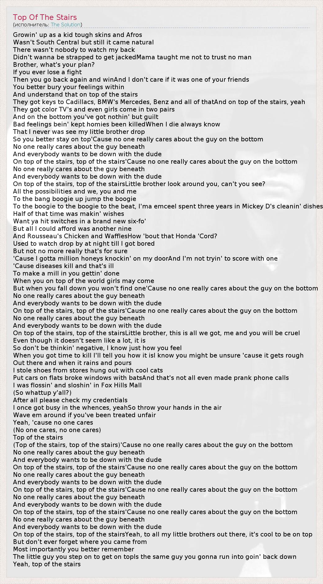 А как ты думаешь, о чем песня "Top Of The Stairs" ?