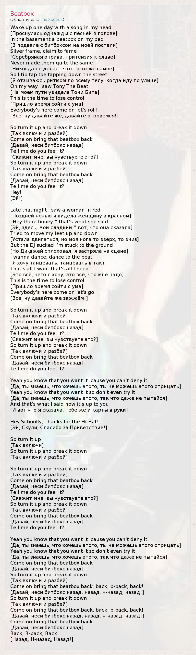 Come on bring that beatbox back, back, b-back, back!