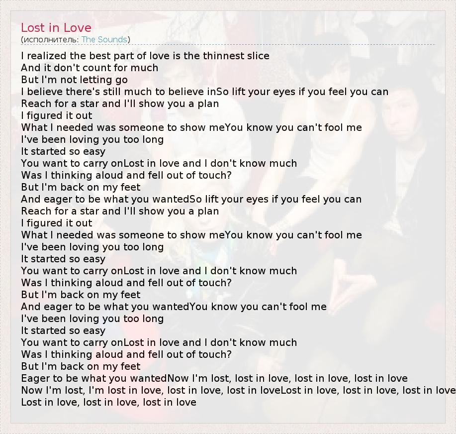 А как ты думаешь, о чем песня "Lost in Love" ?