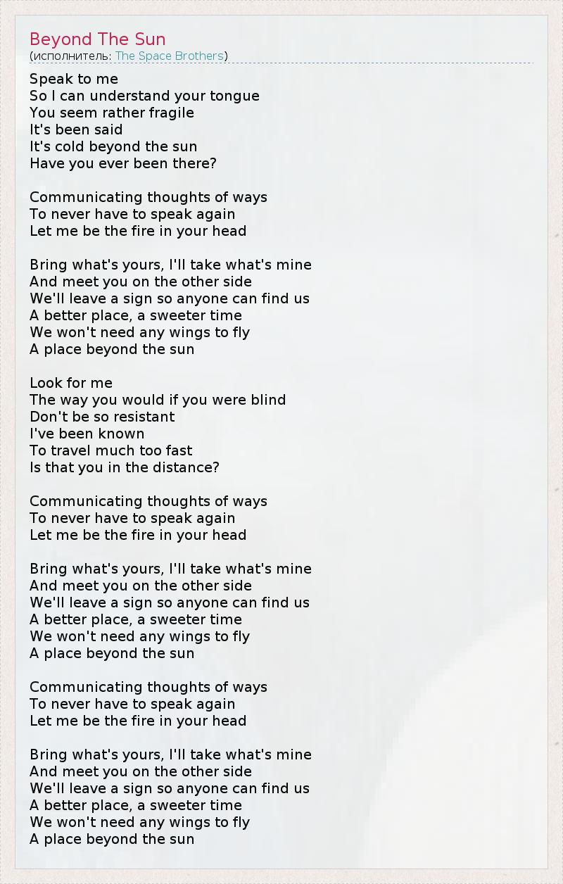 А как ты думаешь, о чем песня "Beyond The Sun" ?