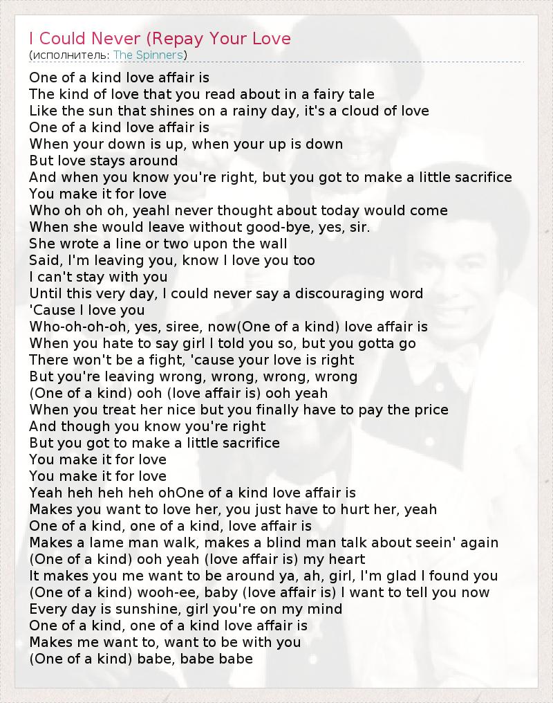 А как ты думаешь, о чем песня "I Could Never (Repay Your Love" ?