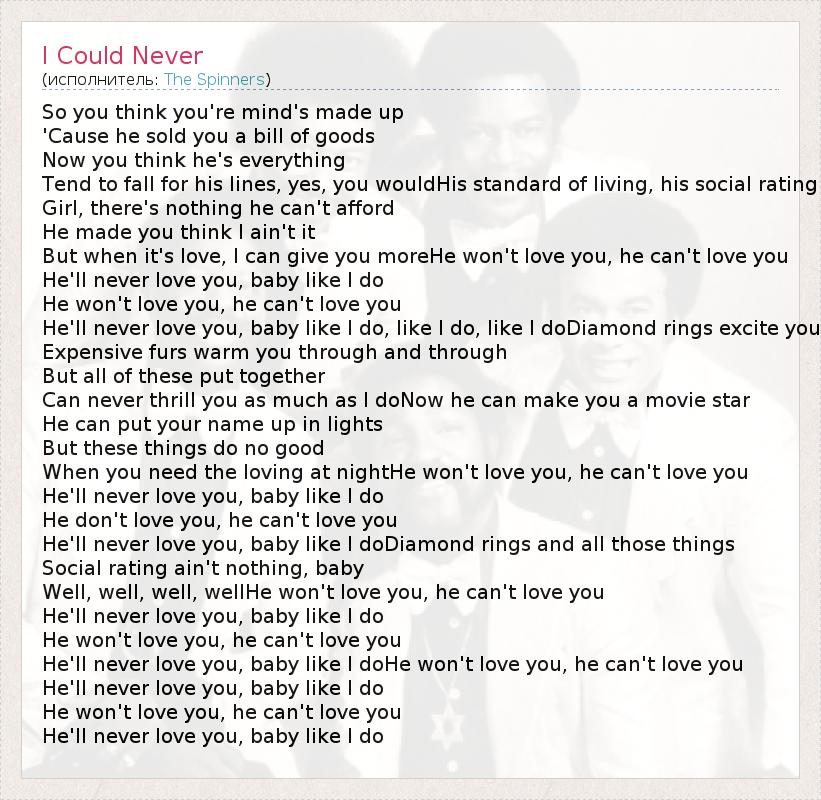 He'll never love you, baby like I doHe won't love you, he can't love you