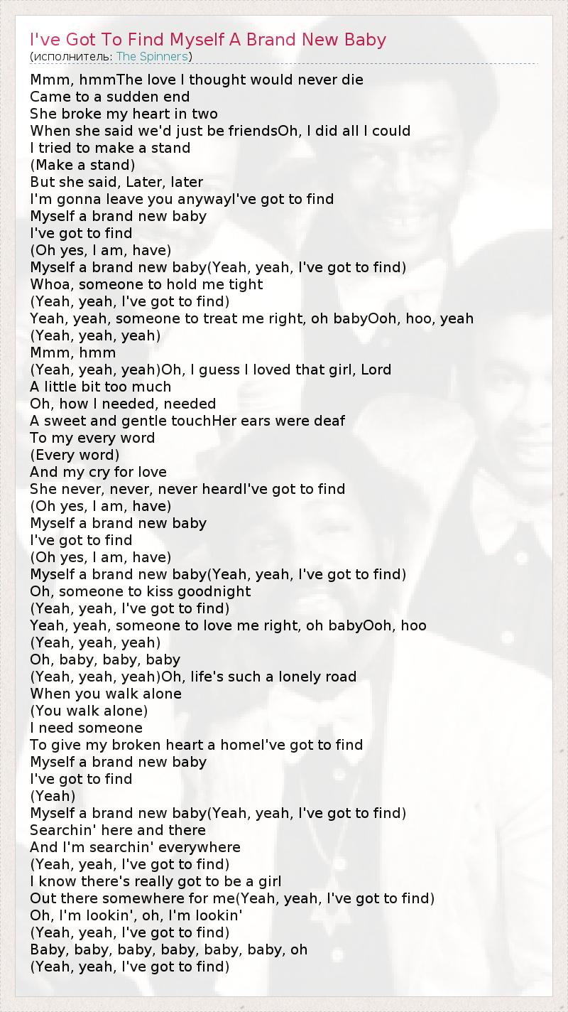 Myself a brand new baby(Yeah, yeah, I've got to find)