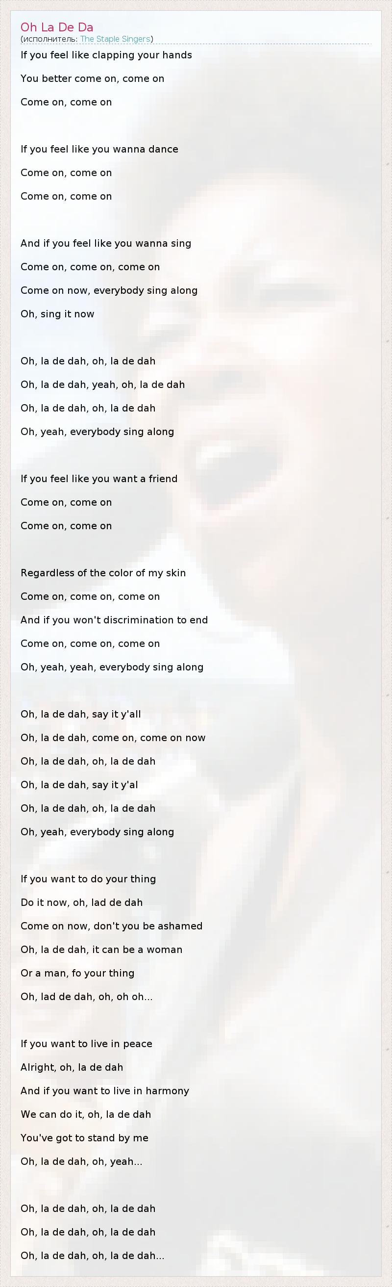 А как ты думаешь, о чем песня "Oh La De Da" ?