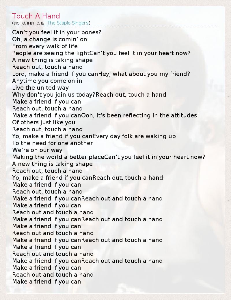 А как ты думаешь, о чем песня "Touch A Hand" ?