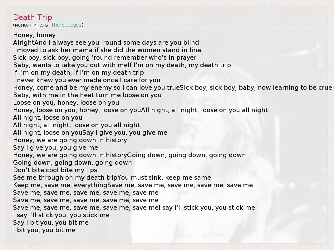 Baby, wants to take you out with meIf I'm on my death, my death trip