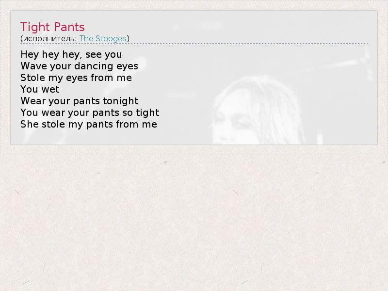А как ты думаешь, о чем песня "Tight Pants" ?