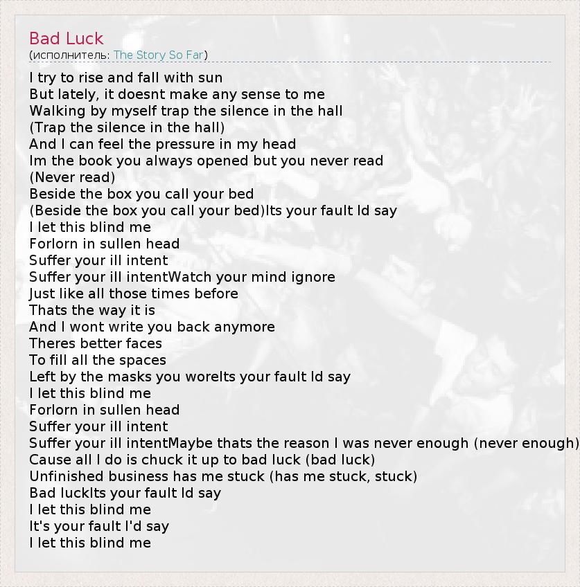 А как ты думаешь, о чем песня "Bad Luck" ?
