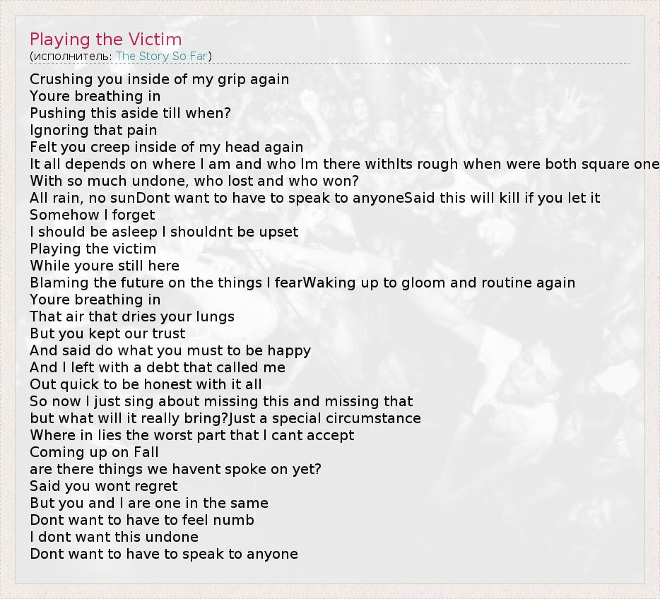 А как ты думаешь, о чем песня "Playing the Victim" ?