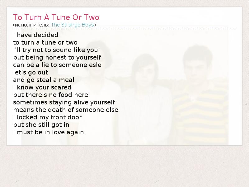 А как ты думаешь, о чем песня "To Turn A Tune Or Two" ?