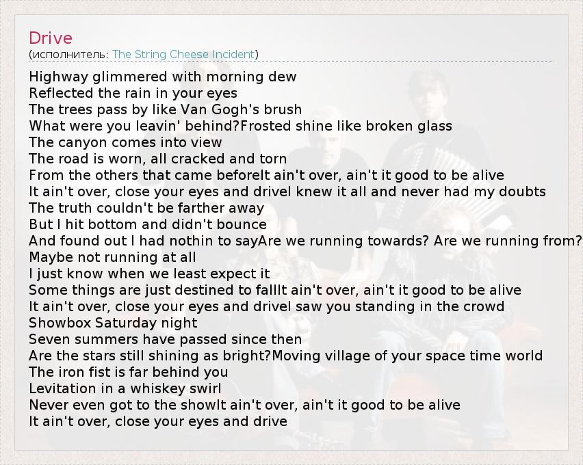 It ain't over, close your eyes and driveI knew it all and never had my doubts