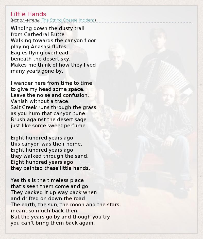 Это интересно:The String Cheese Incident (abbreviated SCI), is a jam band from Crested Butte and Telluride, Colorado formed in 1993. The band was composed of Michael Kang (acoustic/electric mandolin, electric guitar, and violin), Michael Travis (drums and percussion), Bill Nershi (acoustic guitar, lap steel guitar, and electric slide guitar), Kyle Hollingsworth (piano, organ, Rhodes, and accordion), and Keith Moseley (bass guitar), and, in 2006, Jason Hann, an auxiliary percussionist.Their music is strongly influenced by bluegrass sounds, as well as forays into rock, calypso, country, funk, jazz, Latin, reggae, and occasional psychedelia. SCI has been described as a democratic ensemble rather than a band,... продолжение