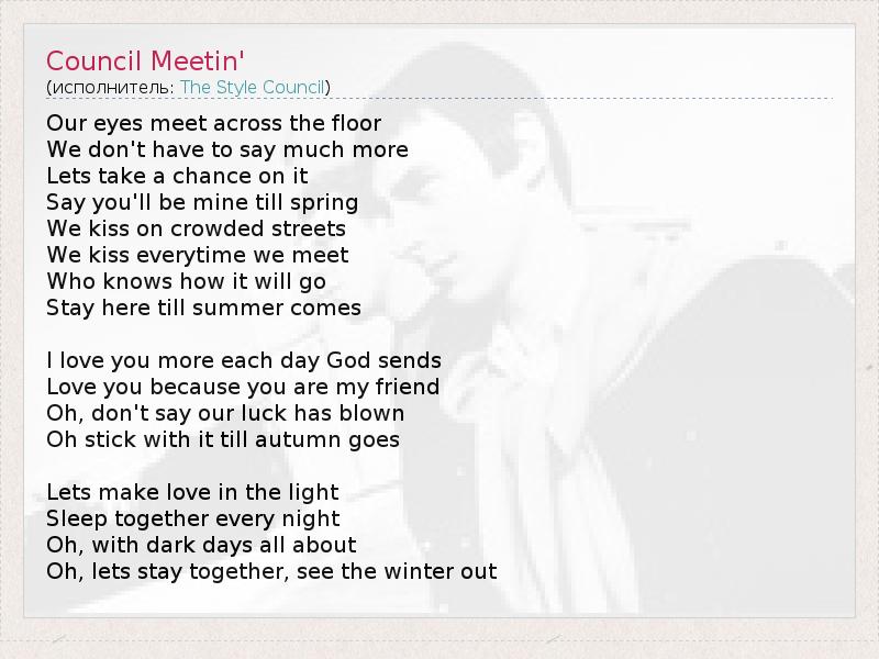 А как ты думаешь, о чем песня "Council Meetin'" ?