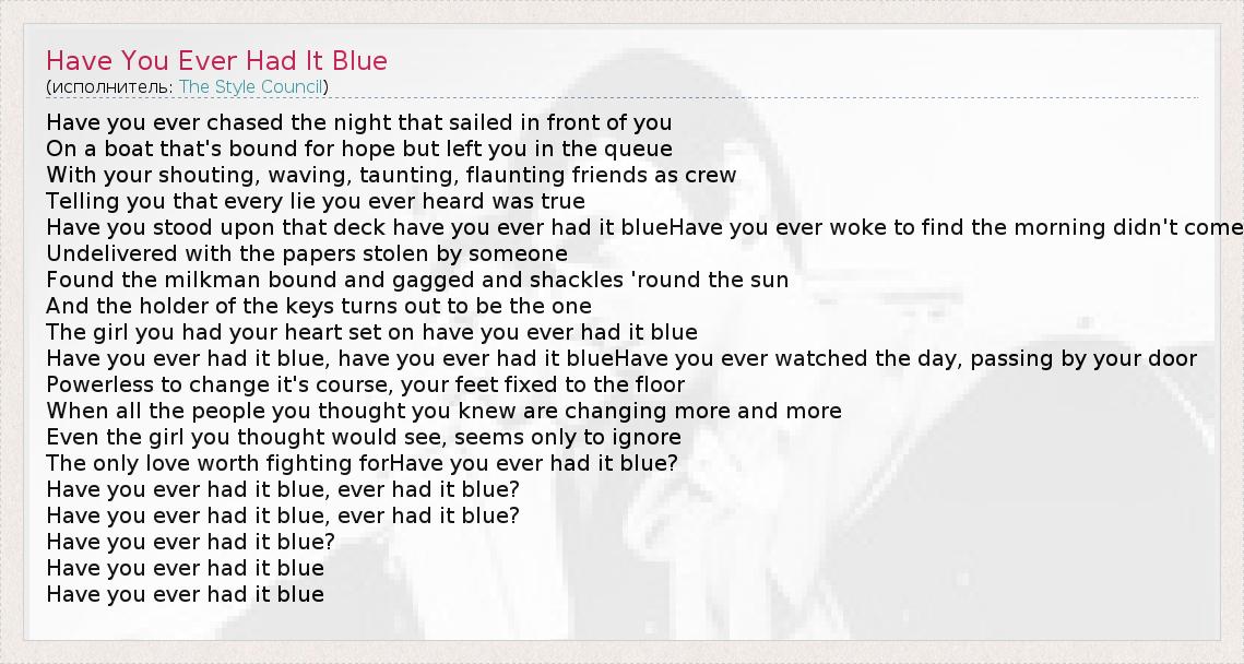 А как ты думаешь, о чем песня "Have You Ever Had It Blue" ?