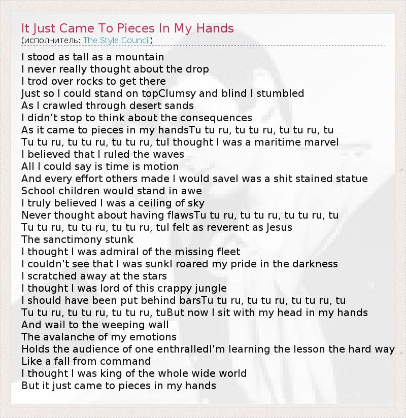 А как ты думаешь, о чем песня "It Just Came To Pieces In My Hands" ?