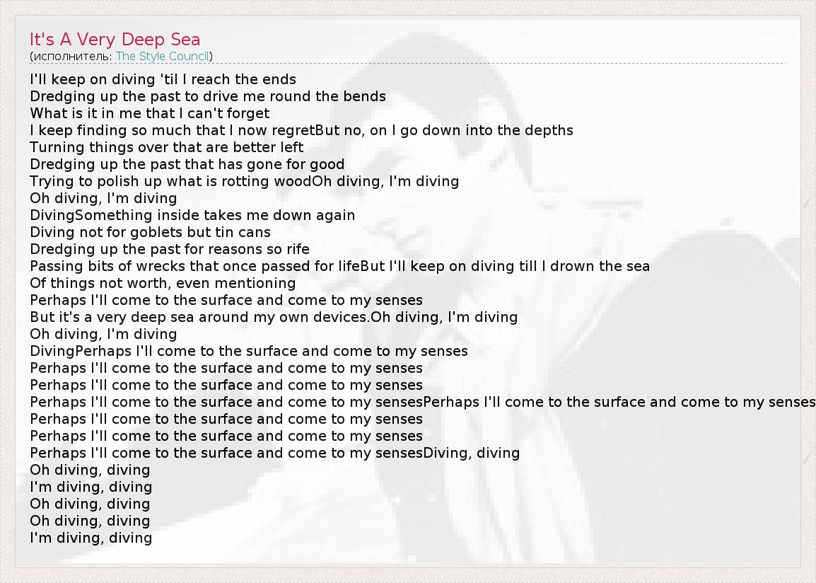 А как ты думаешь, о чем песня "It's A Very Deep Sea" ?