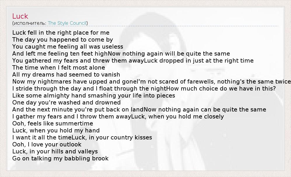 I gather my fears and I throw them awayLuck, when you hold me closely
