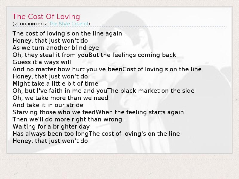 А как ты думаешь, о чем песня "The Cost Of Loving" ?