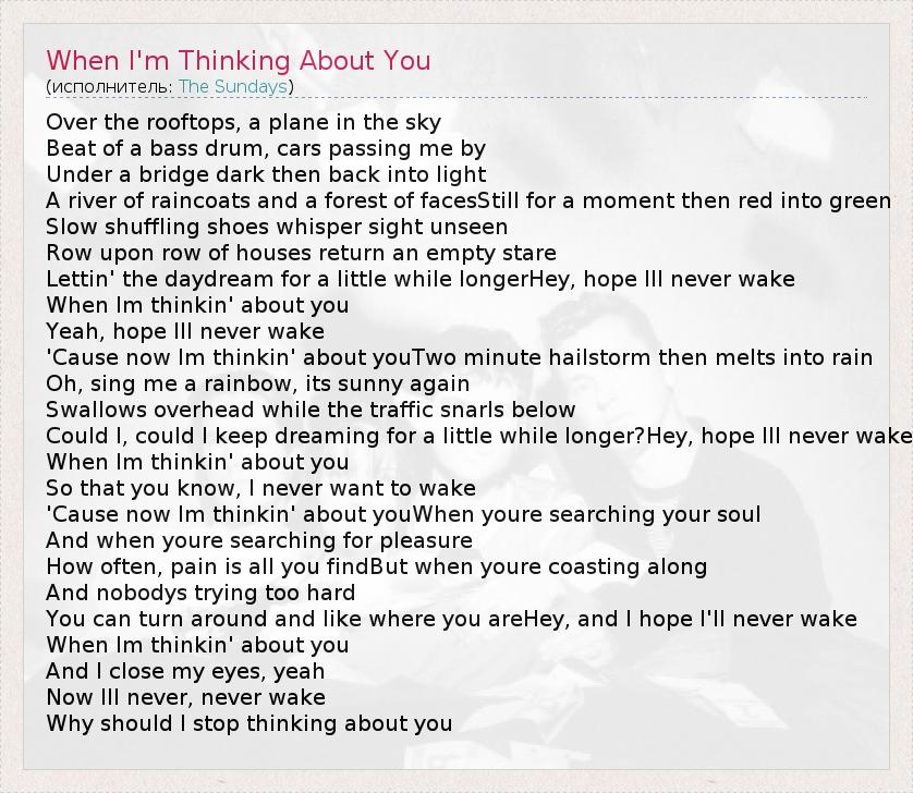 А как ты думаешь, о чем песня "When I'm Thinking About You" ?