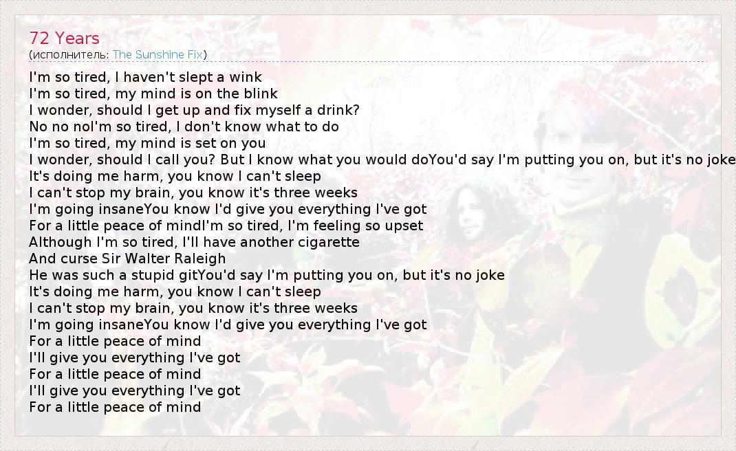 For a little peace of mindI'm so tired, I'm feeling so upset
