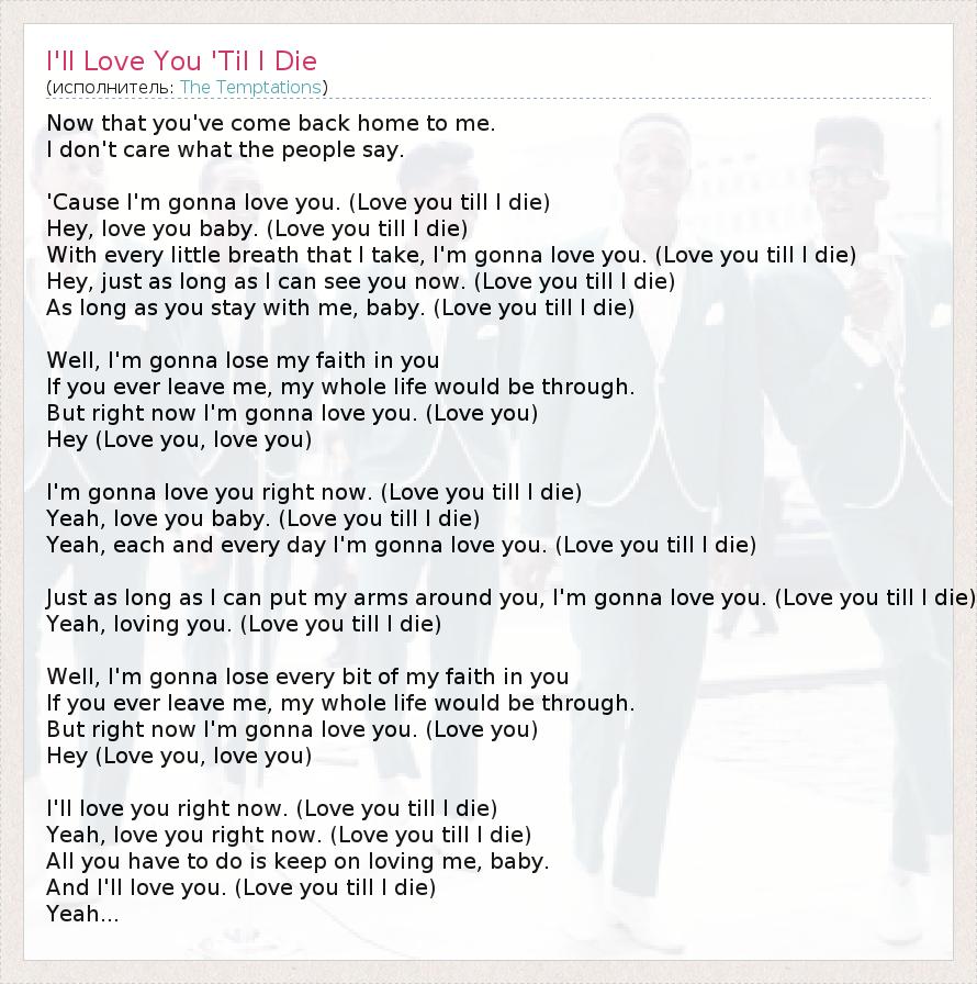 Just as long as I can put my arms around you, I'm gonna love you. (Love you till I die)